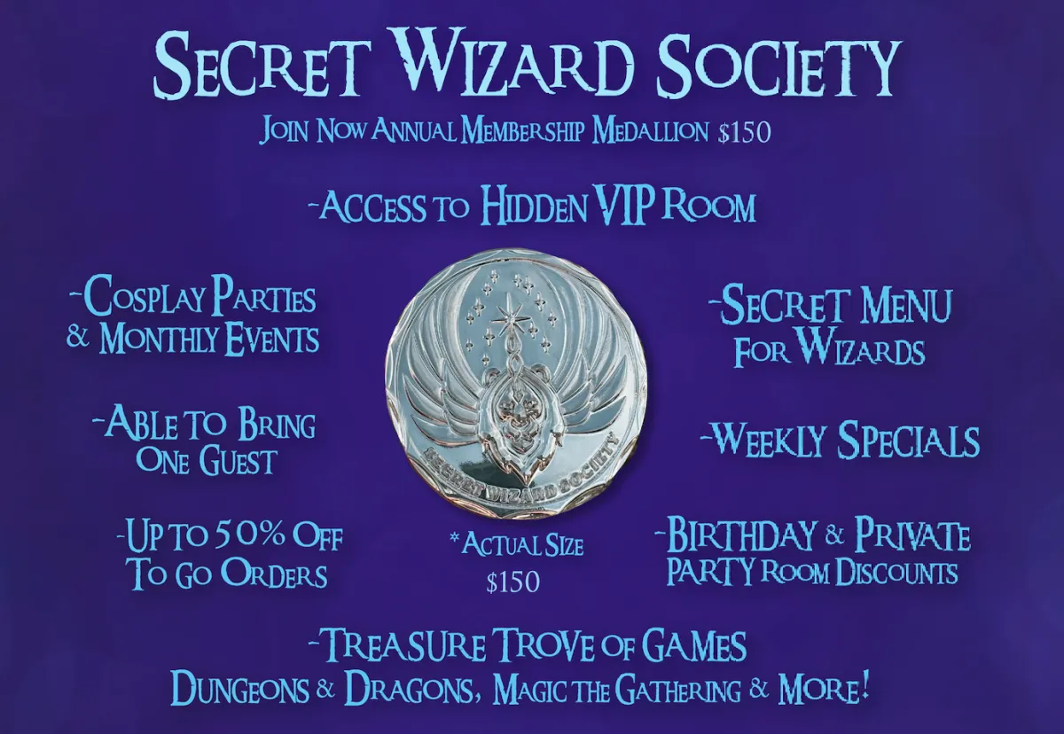 Inside you will find our Elixir Wizard Academy & Boba Tea Bar, where CERAPH, our Winged Lion, guards thee from the evil Cthulu KRONATH the Destroyer.
