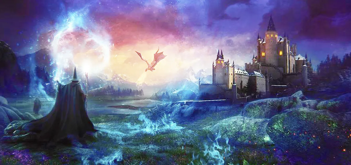 Take caution when climbing the Perilous Staircase past the Giant Skeleton Warrior and magical gallery of rogues and wizards!